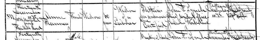| Date & Place of Death: | 13th December 1875, W.H. Hospital, from Fair Hill Rd |