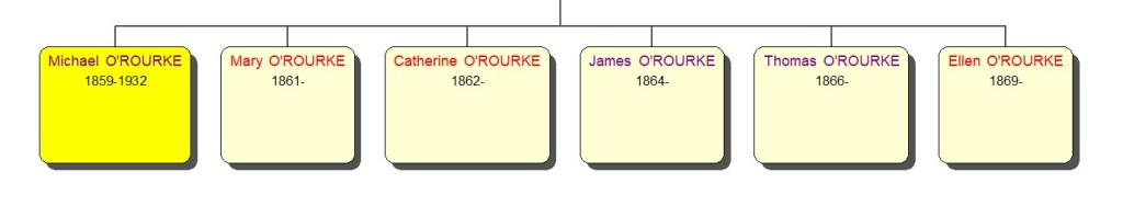 Brian O’ROURKE was born on 20 Apr 1834 in Lisnakealwee. He was a Farmer. He died on 2 Apr 1908 in Lisnakealwee.