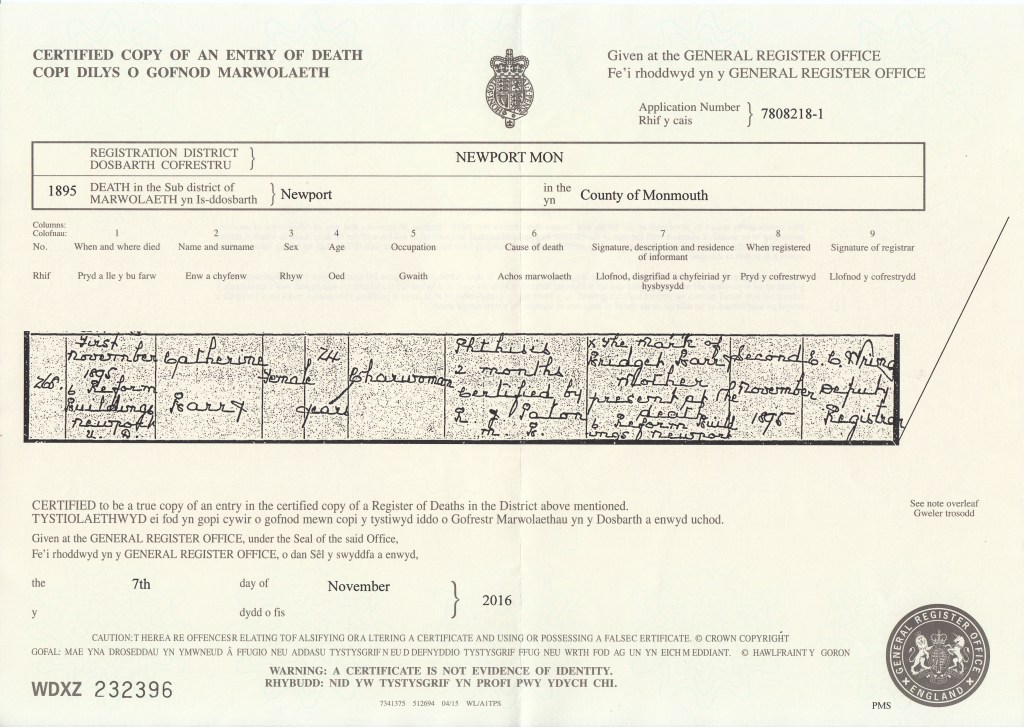Where & When died: 1st November 1895, 6 Reform Buildings Newport