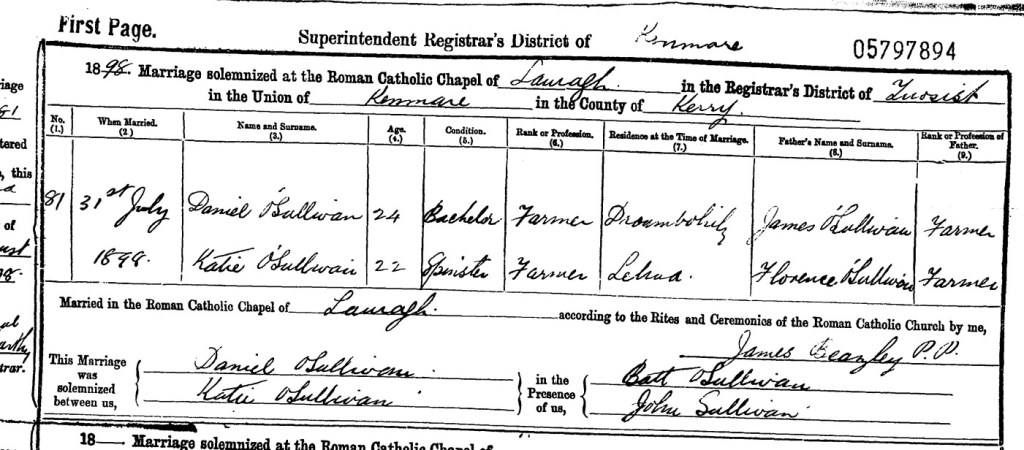 | Husband’s Father: | James O’Sullivan |