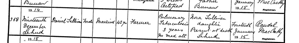 | Signature, Qualification & Residence of Informant: | Nora Sullivan, daughter, present at the death, Lehud |