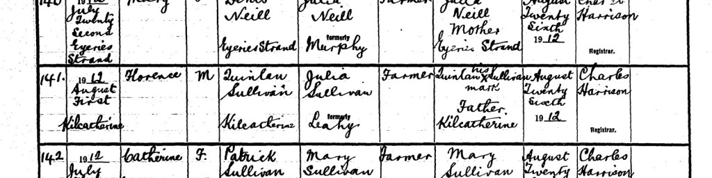 * This appears to be an error as Florence Sullivan was actually born on August 2nd. Inaccuracies in birth and death dates were very common when these events were registered.