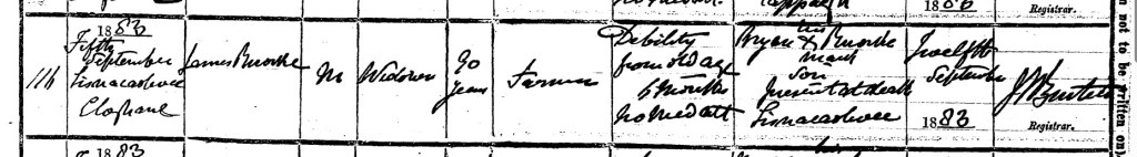 | Signature, Qualification & Residence of Informant: | Bryan Rourke (his mark), son, present at death, Lisnakealwee |