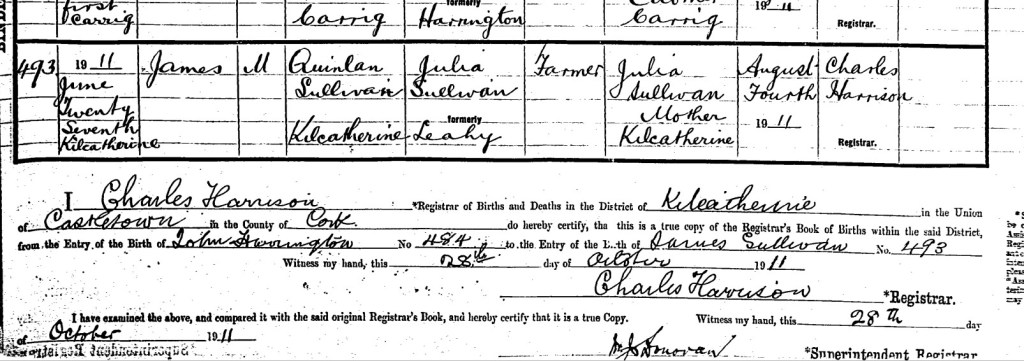 Name and Maiden Surname of Mother: Julia Sullivan formerly Leahy