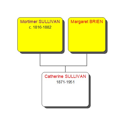 Catherine SULLIVAN was born on 24 June 1871 in Crostera West, Glengarriff, Cork, Ireland. She worked as a servant. She died on 8 January 1951 in Furkeal, Glengarriff.