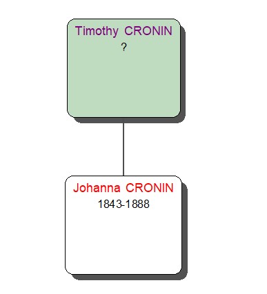 Johanna CRONIN was born around 1843 and her father was a farmer, although it is not possible to identify exactly where this was. She died on 17 Sep 1888 in Incheese.