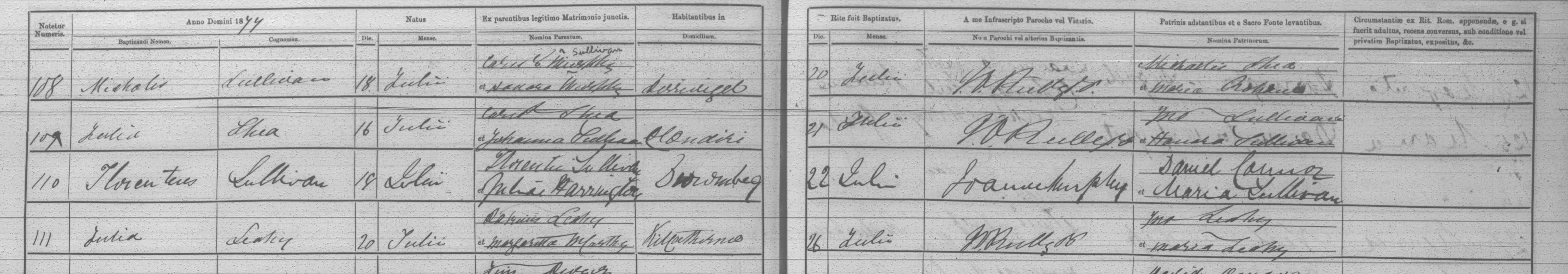 Julia was baptised on July 26th 1877. The Eyeries parish record has been transcribed and there is also a microfilm image.