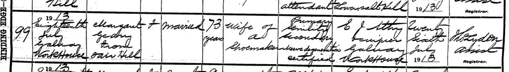 | Date & Place of Death: | Eighteenth of July 1913, Galway Workhouse |