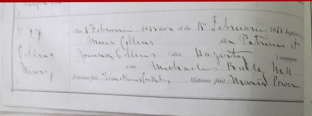 | daughter of Patricus & Joanna Collins (nee Hagerty) |