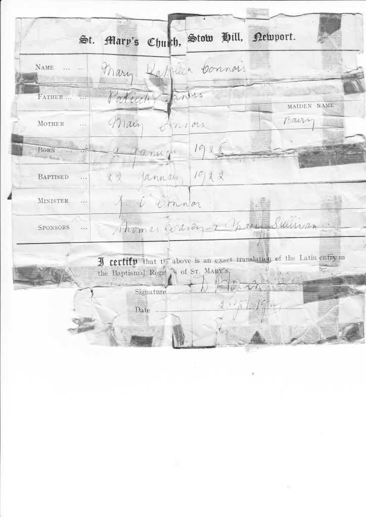 *This was presumably required for Mary’s marriage in September 1941.