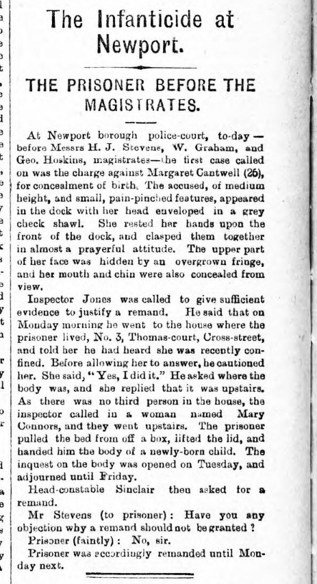 The Infanticide at Newport 28th August 1889
