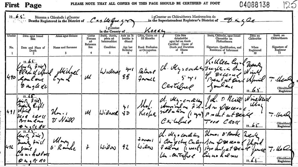 | Signature, Qualification & Residence of Informant: | Thomas O’Rourke, son of the deceased, present at death |