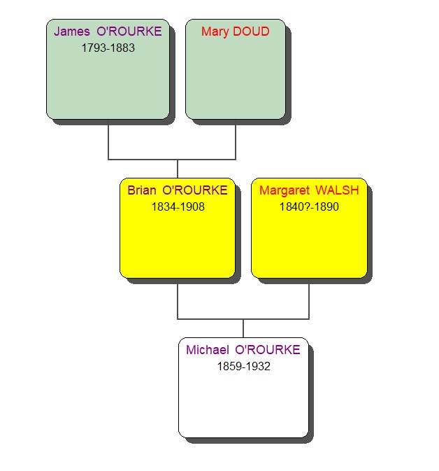 Michael O’ROURKE was born on 14 Aug 1859 in Lisnakealwee. He was a farmer. He died on 14 Nov 1932 .