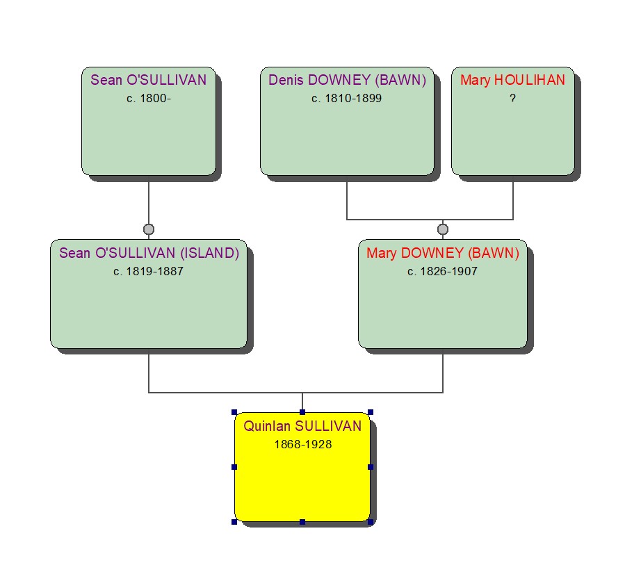 Michael Sullivan was born on the 27th of December 1905 in Kilcatherine and baptised on the same day in Eyeries. His parents were Quinlan Sullivan and Julia Leahy. He emigrated to the USA and died in Boston on 16 Oct 1949.