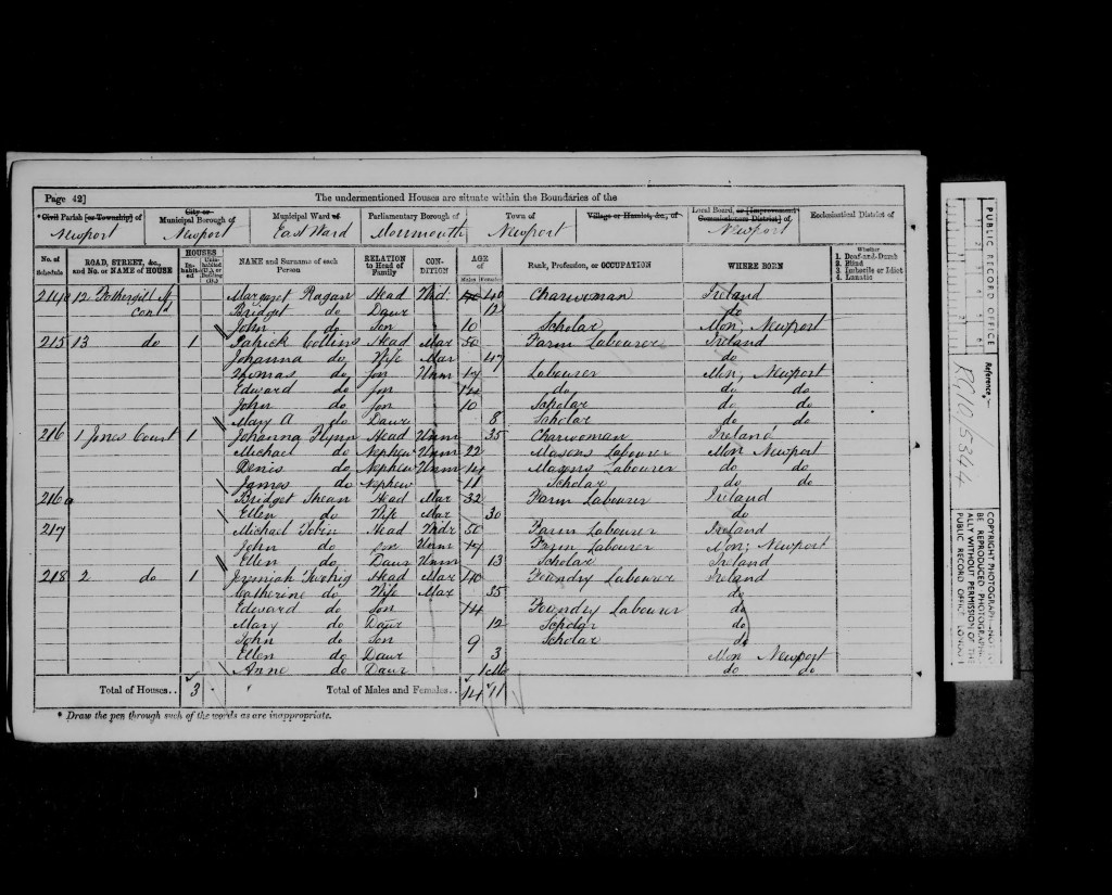 | Thomas Collins | Son | Unmarr. | M | 17 | Labourer | Mon, Newport | |