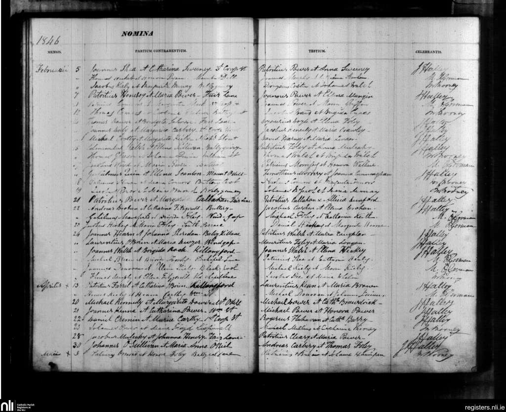 11 Feb 1846 Patrick Connors & Margaret Mack*. Third Cross Street