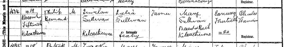 Name and Maiden Surname of Mother: Julia Sullivan formerly Leahy