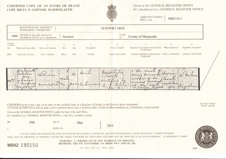 When & Where Died: Sixteenth October 1900, 17 Emlyn Terrace Newport